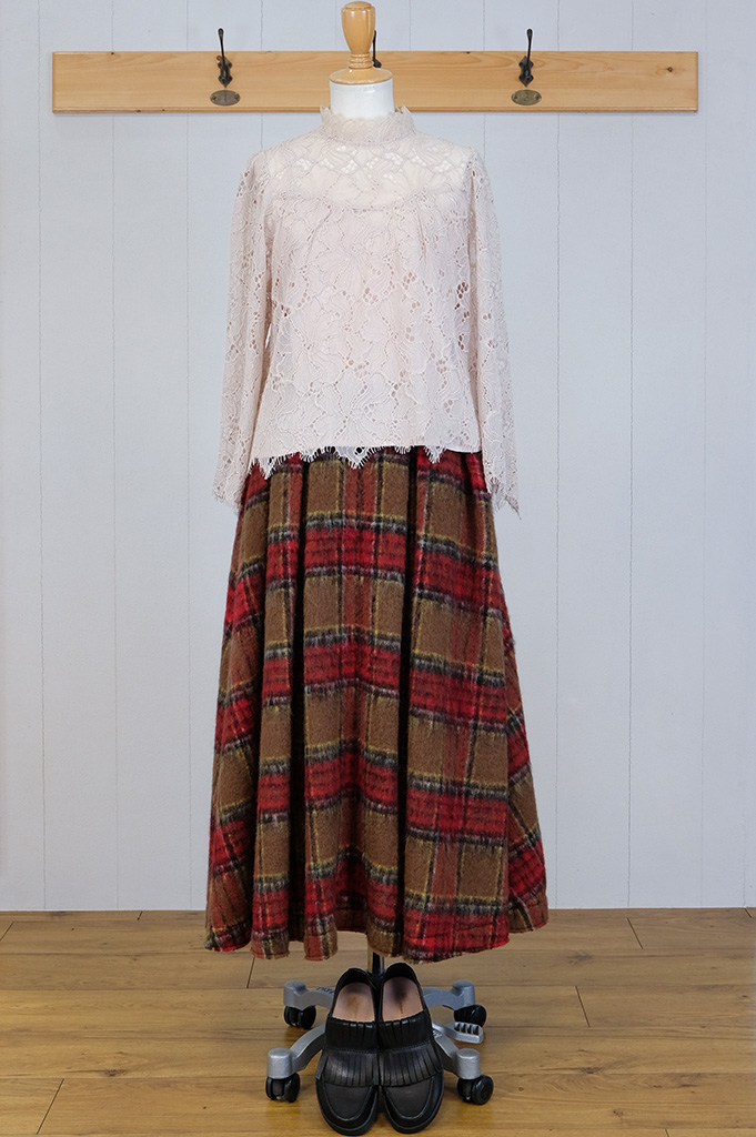 SUNAO KUWHARAのタータンチェックの色合いが可愛いスカート。