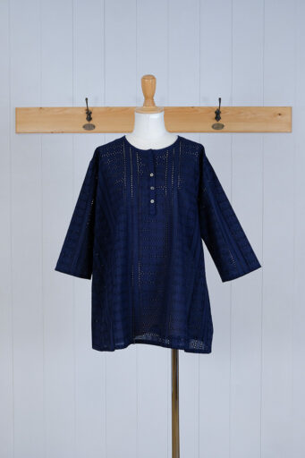 ウエストは切りっぱなし仕様で、裾入れした時に可愛く個性的に魅せられます。