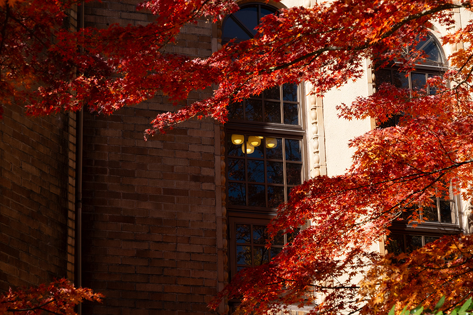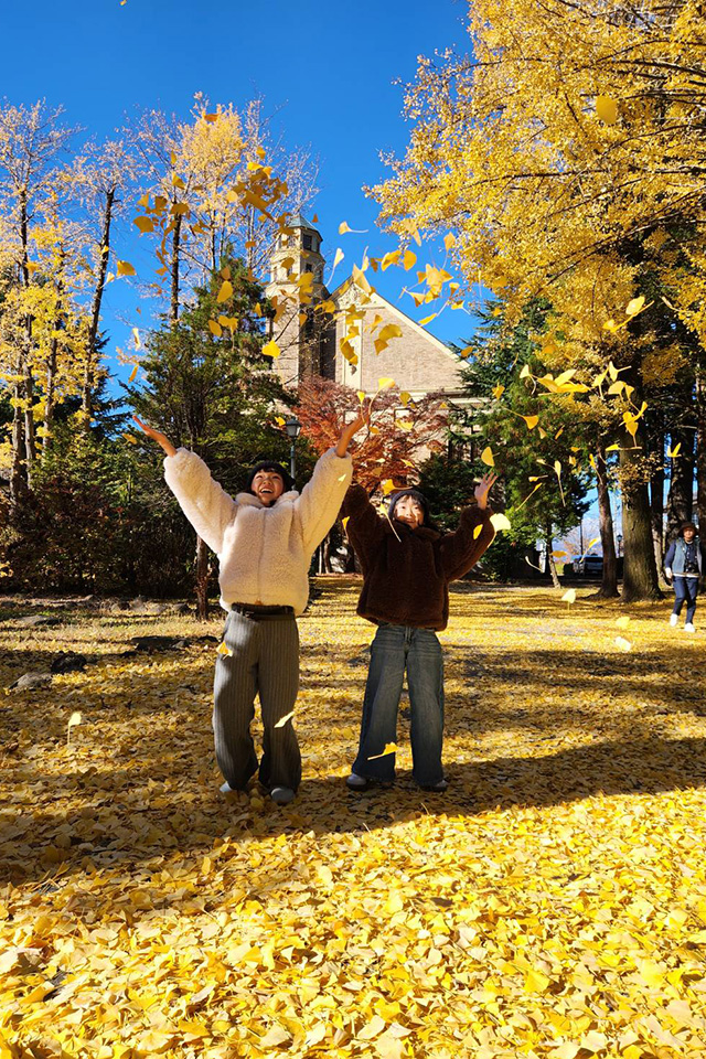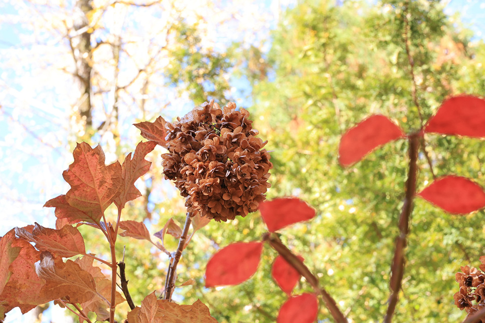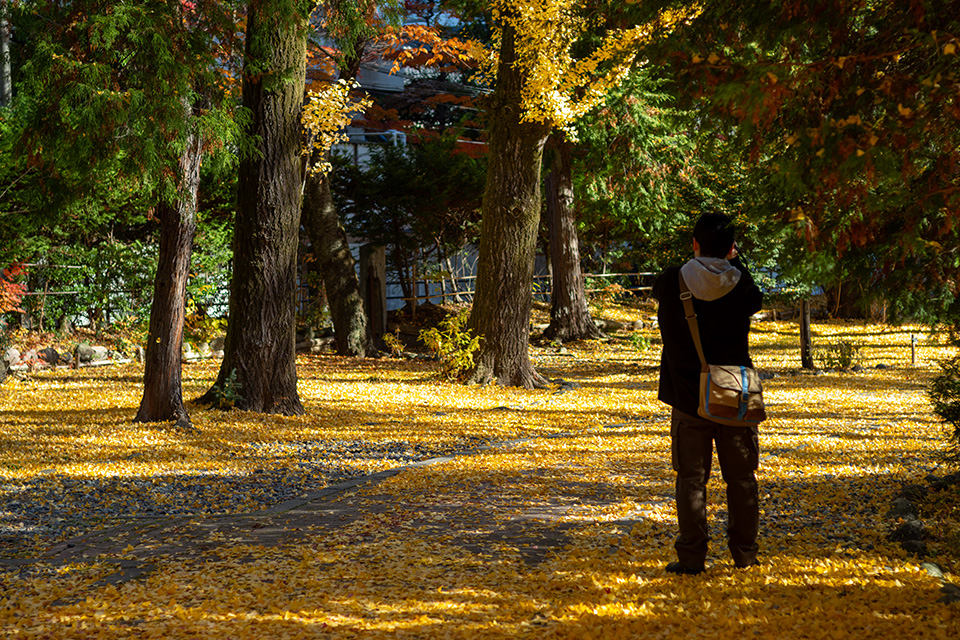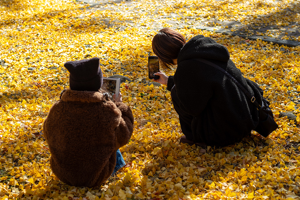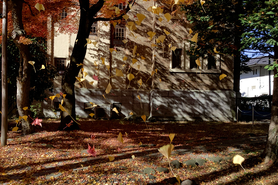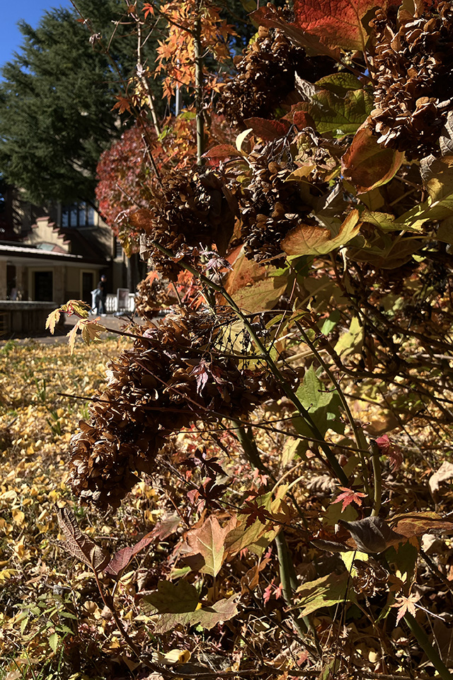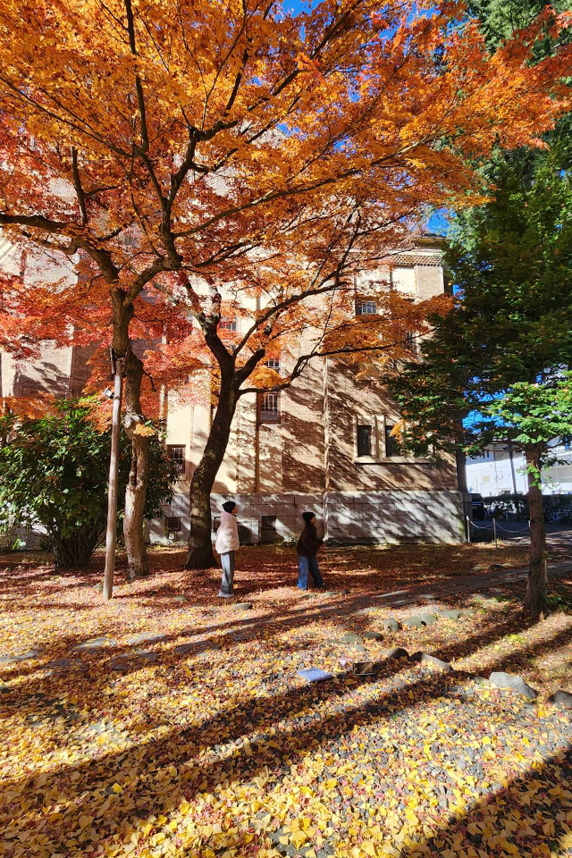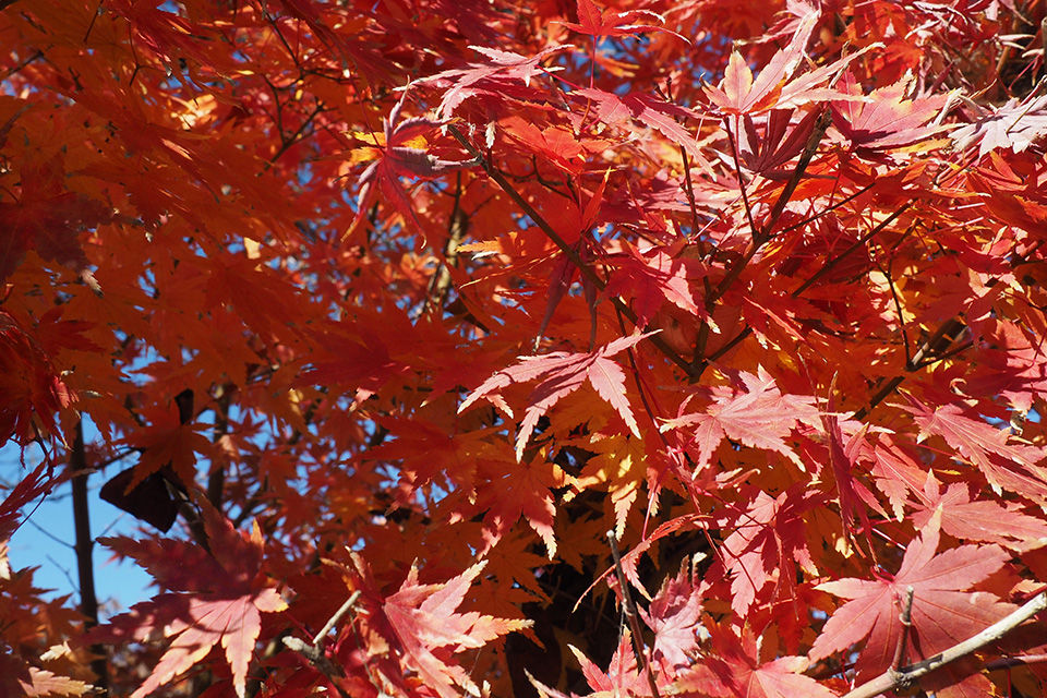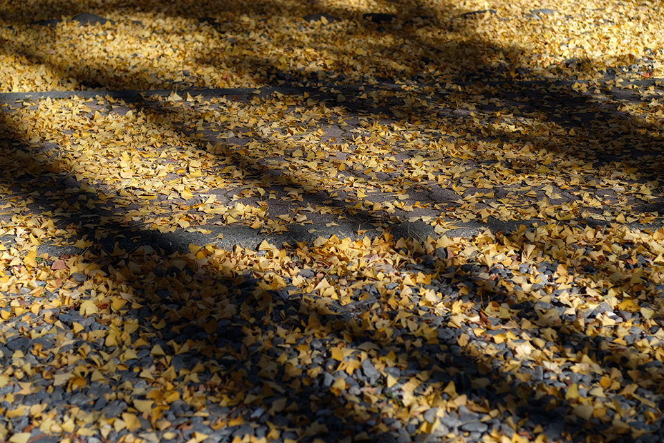 もみじは真っ赤。銀杏は6,7割落葉してしまいましたが、落ちているのもまたステキです。