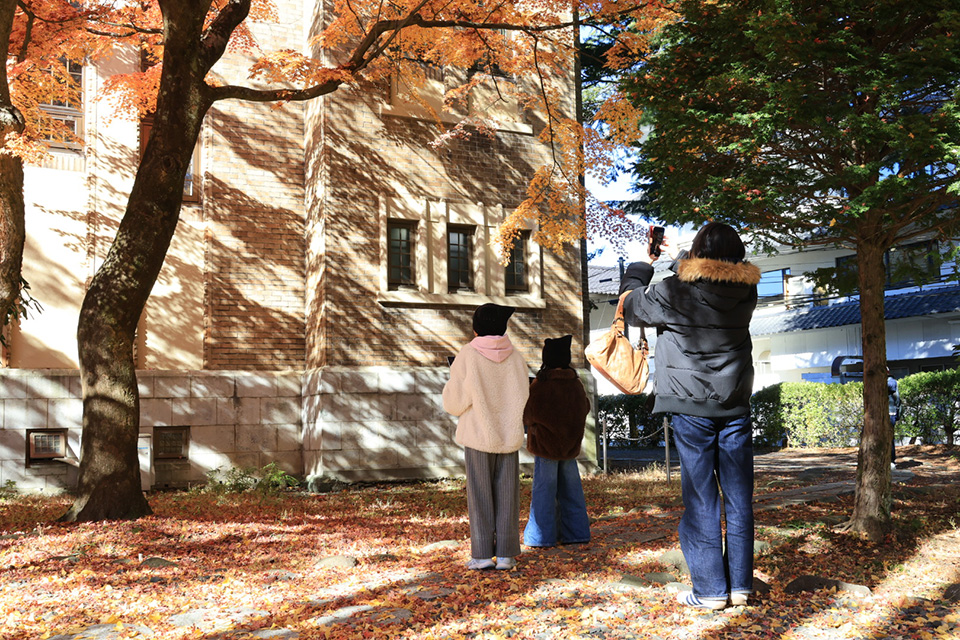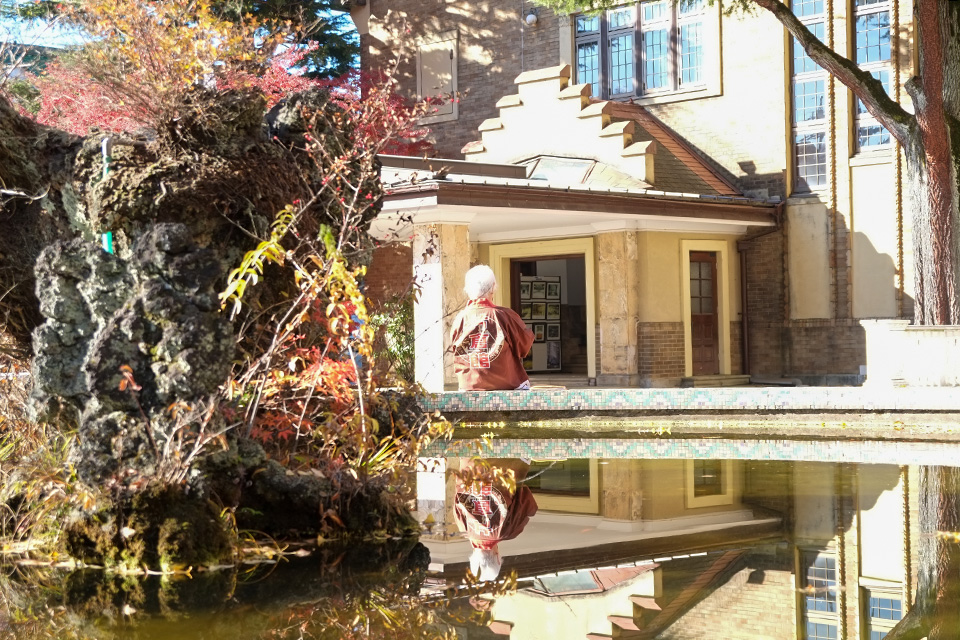 あっという間に国指定重要文化財のモダンな洋館、片倉館に到着。本格撮影スタートです!
