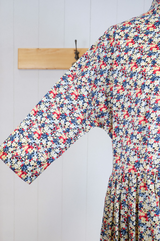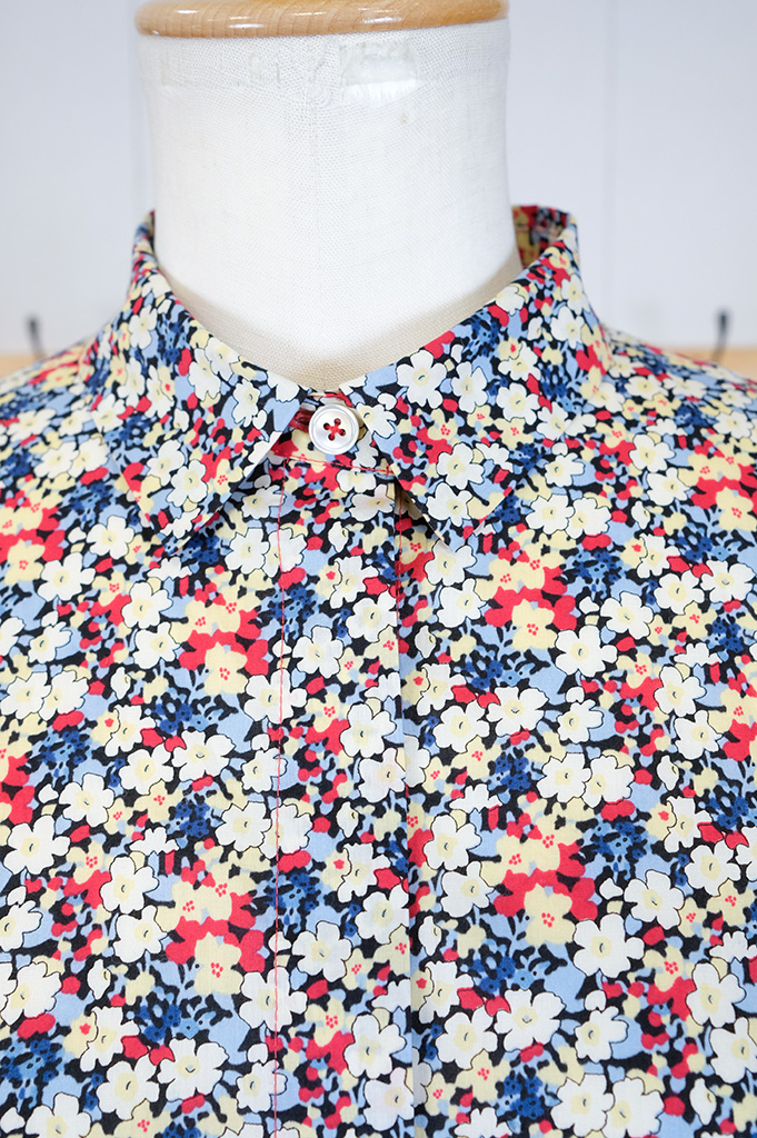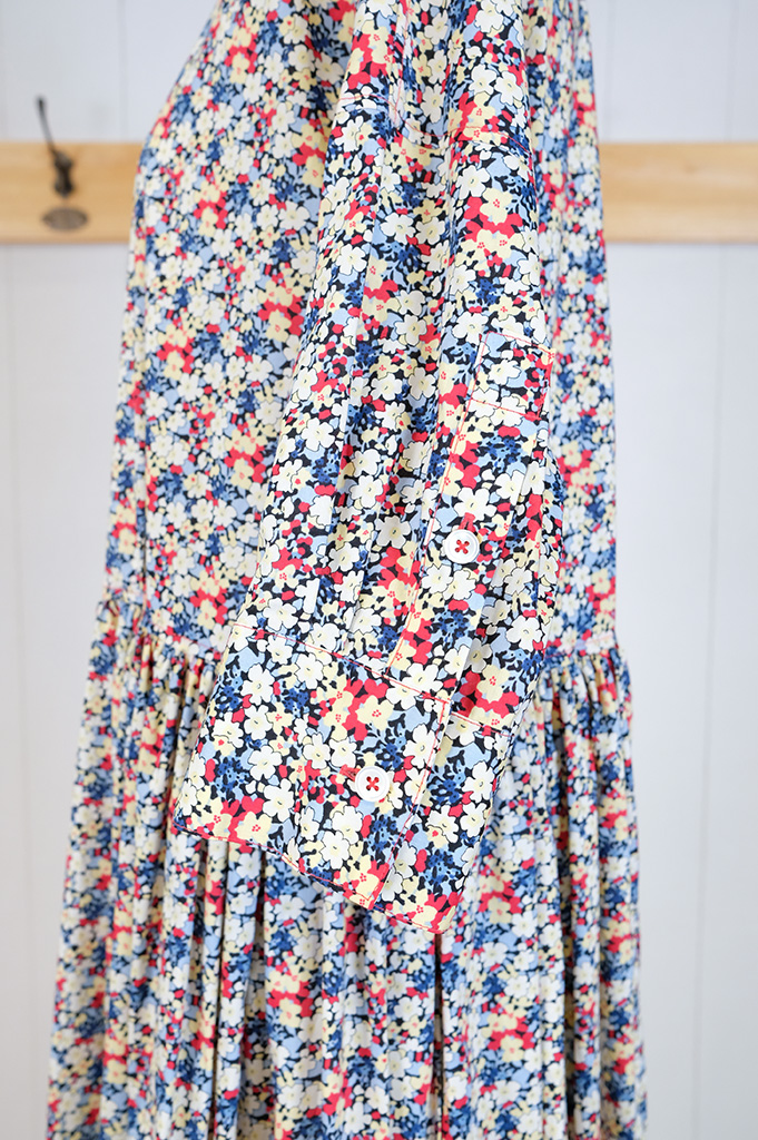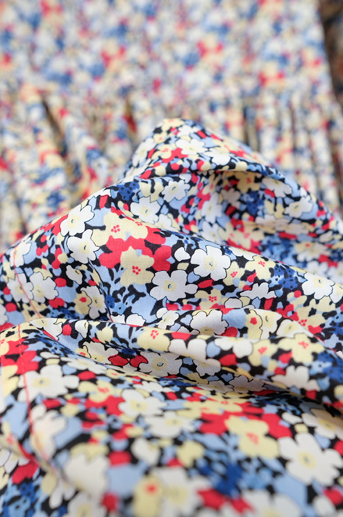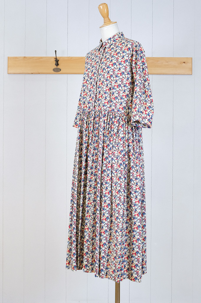 リバティプリントが目をひく可愛い可愛いワンピース。