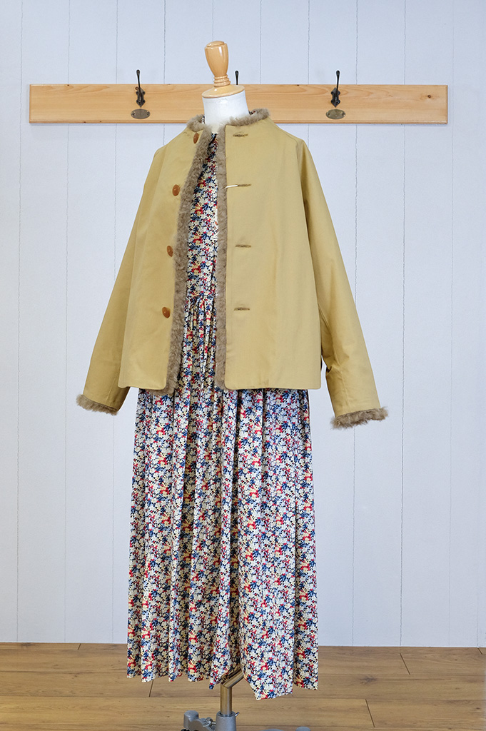 衿・前立て・袖にはしっとり柔らか暖かなフェイクファーがステキです。