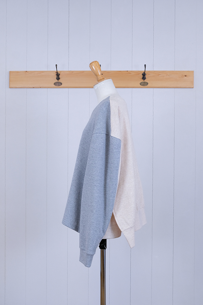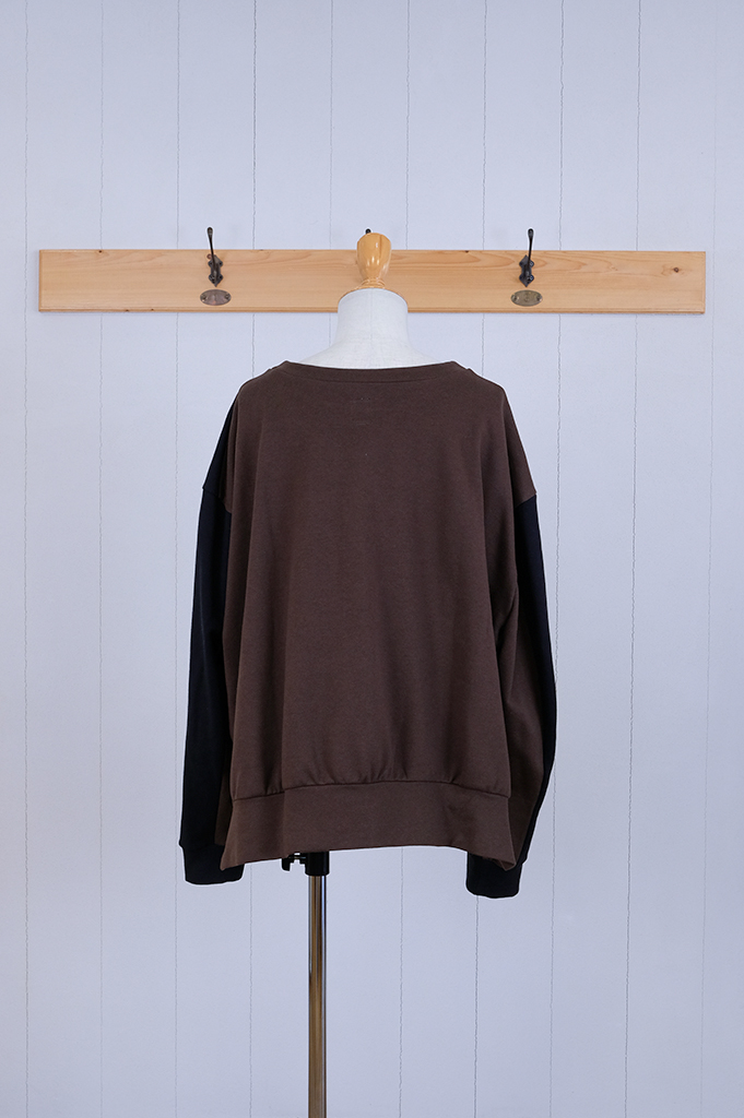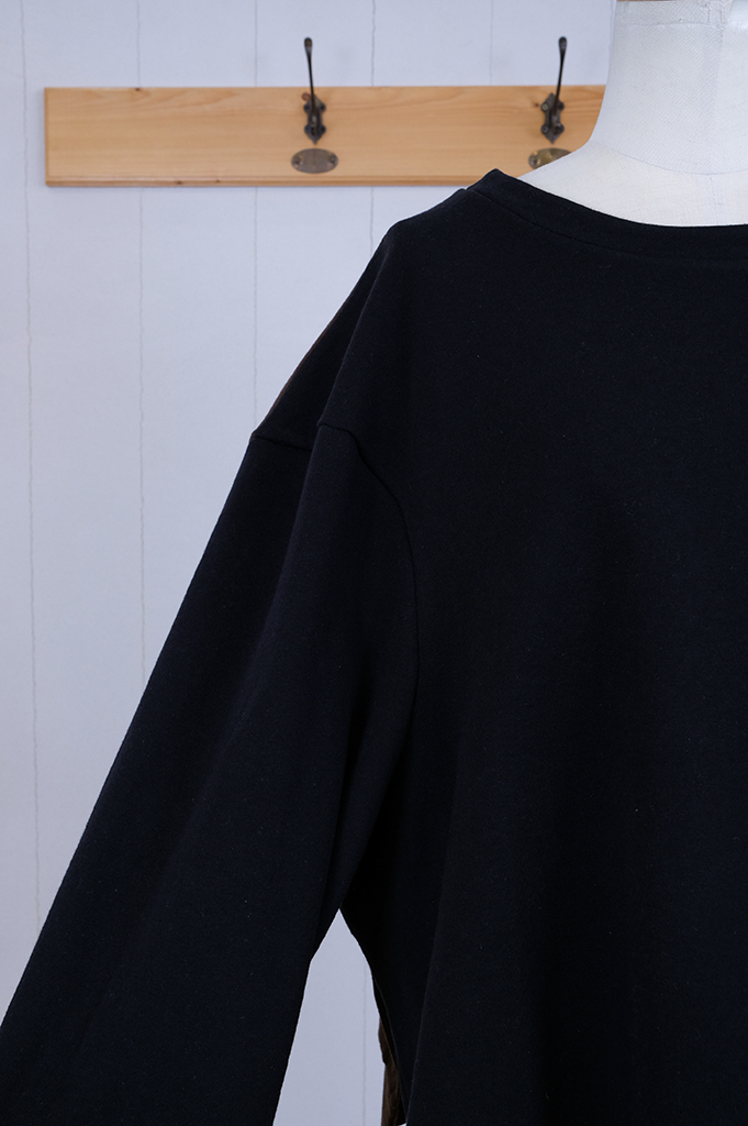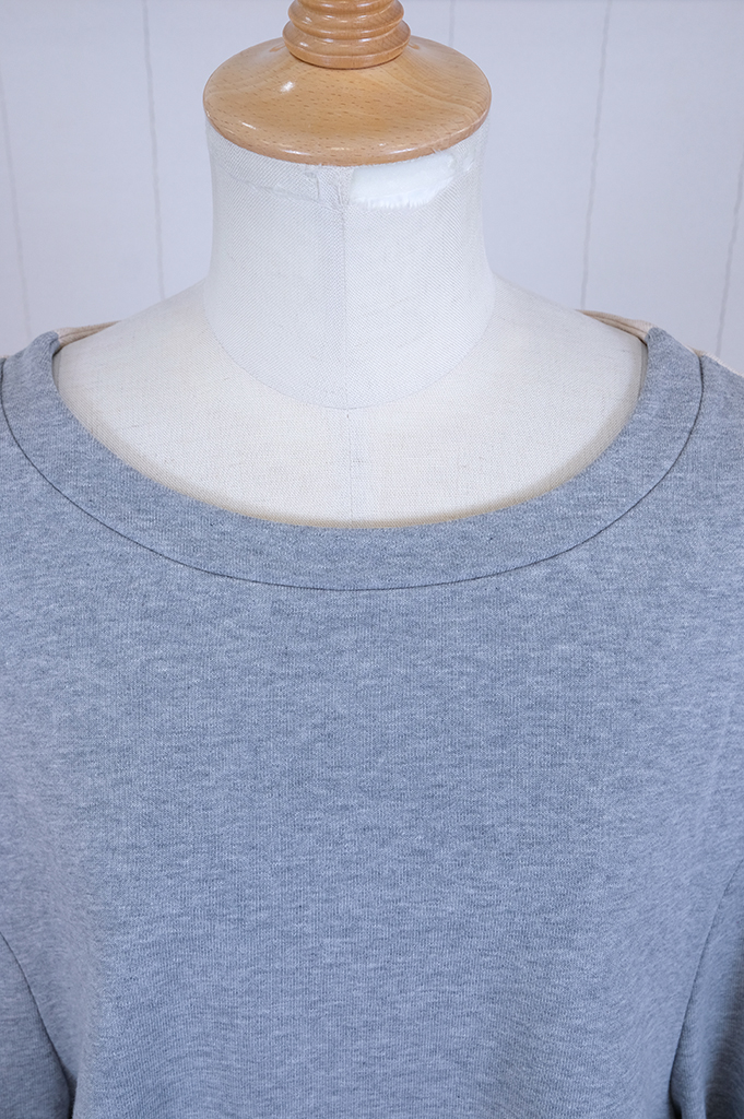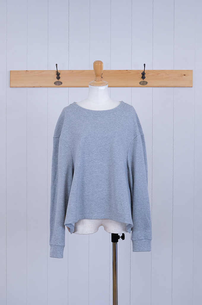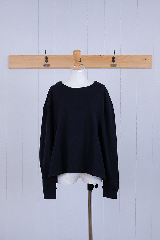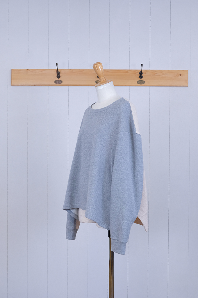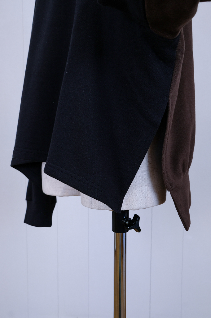 袖付を前に振り、ちょっと不思議な個性的なシルエットの