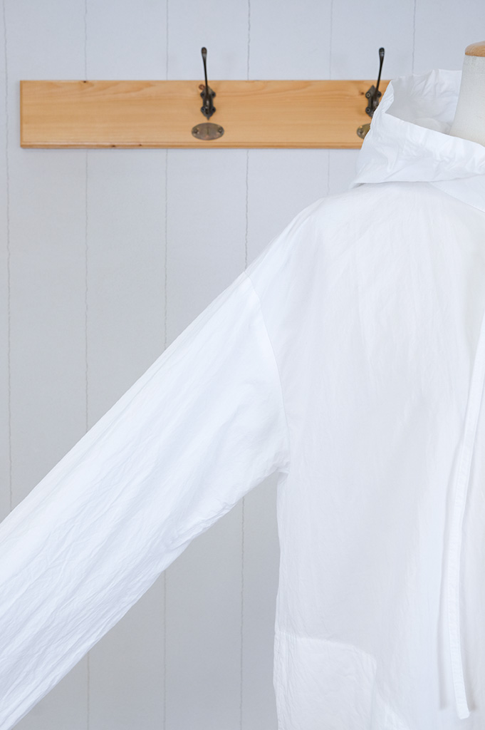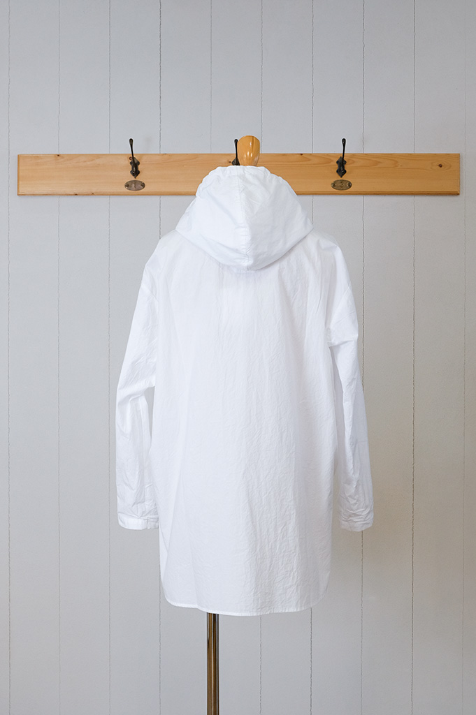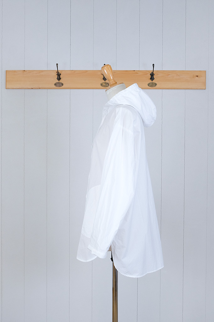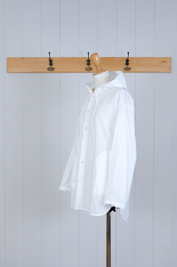 ちょっと縦長のフード付きシャツ。